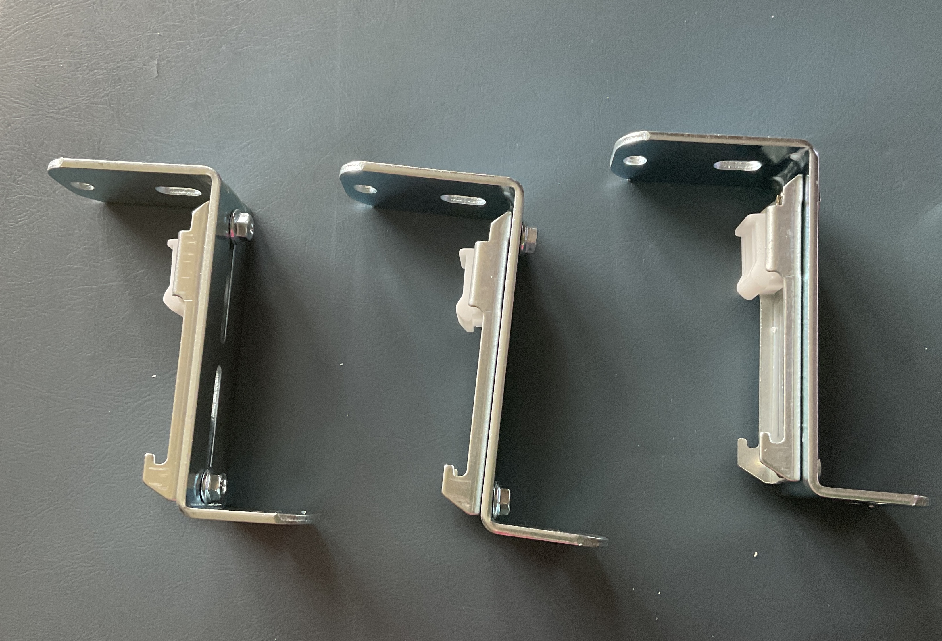 - Please fasten the ceiling brackets to the wall brackets using the provided bolts and nuts. The wall bracket has two “arms”, each pointing opposite directions. It is recommended that the wall bracket be mounted to the wall using the hole in the longer arm and that the longer arm should point towards the floor. The longer arm could also point towards the ceiling depending on your installation situation